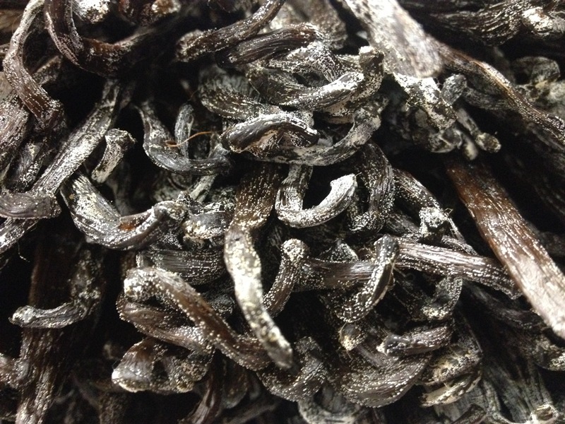 This photo of our vanilla stock was taken last winter, when the cold temperatures in our warehouse encouraged the natural vanillin crystals to form on the pods. As the beans warm up, these crystals melt back into the pod. This is confirmation that the white speckling is not mould, but a hallmark of exceptionally high quality vanilla.